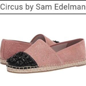 NEW! SAM EDELMAN Loretta Metallic Embellished Espadrille Slip On Flat Loafers 6.