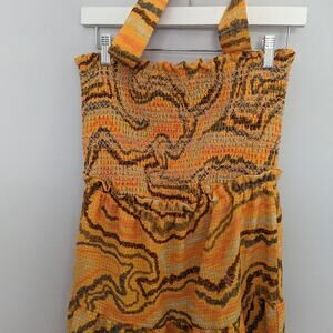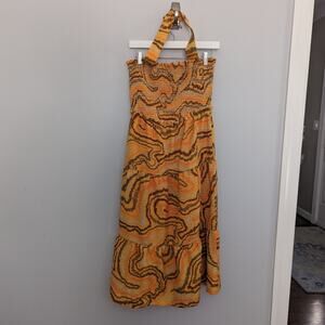NEW SAM EDELMANWomen's Jennie Printed Smocked Slit-Front Halter Midi Dress L