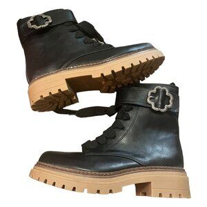 NEW SAM & LIBBY SAMANTHA COMBAT BOOT BLACK WOMENS 9 BLING BUCKLE BOOTIES ANKLE