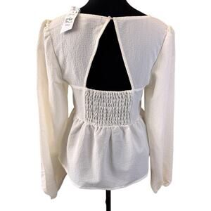 NEW SANCTUARY Anthropologie White Long Sleeve Smocked Back Blouse Size S