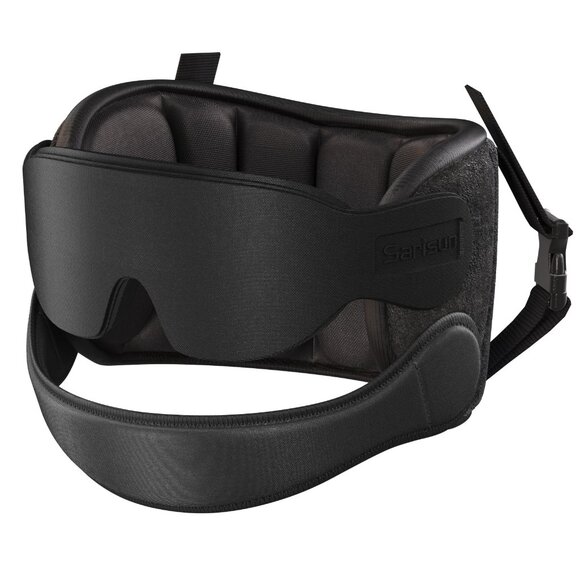 NEW SARISUN Airplane Pillow Combo with Chin Strap, Travel Pillow for Airplanes with Sleep Eye Mask, Plane Pillow for Long Flights, Car Road Trip, 360° Headrest, Stop Bobblehead, FSA HSA Eligible, Black