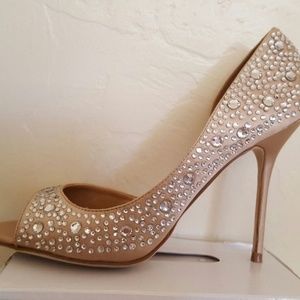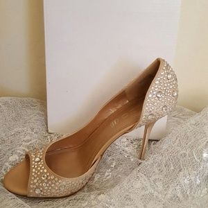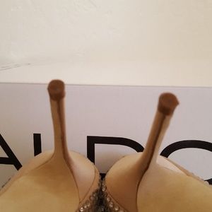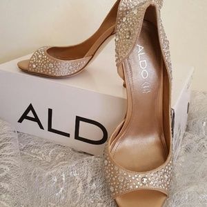 NEW SATIN NUDE CRYSTAL ALDO PEEPTOE PUMP HEELS