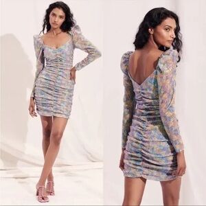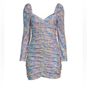 NEW! SAYLOR Lawren Multicolor Sequin Ruched Long Sleeve Mini Dress ✨Small NWT!