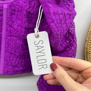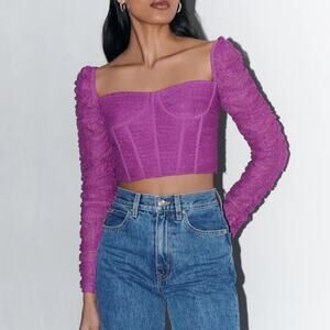 NEW SAYLOR Purple Cropped Lace Long Sleeve Corset Blouse Crop Top XS Feminine
