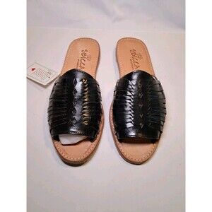 NEW SBICCA Lawrin Flat Sandal Slide Black Leather Open Toe Slip On PS100 Size 6