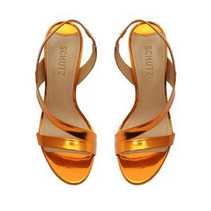 NEW - SCHUTZ Block Heel - Metallic Kelly Leather Sandal