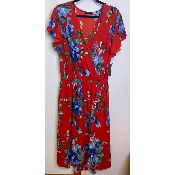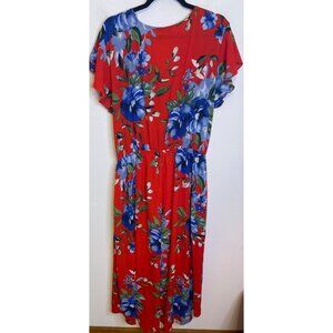 NEW SCOBE Floral Print Faux Wrap Maxi Dress Flutter Short Sleeve Vneck Size 3X