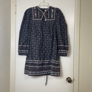 NEW SEA NY Perry Border Puff Sleeve Tunic Embroidered quilted floral Dress XS