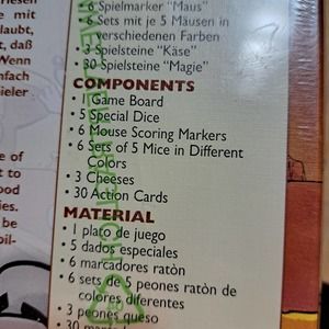 2-6 Players, 45 Minutes. A gang of 5 mice in a race for cheese. To move your mice, you throw special dice that has green, red, and yellow faces. A green face allows your mouse to move forward; a red face means your mouse has to move backward, and a yellow face does nothing. You even have special powers to help you out. The object of the game is to have one of your mice to the cheese first, and it's yours. Simple, right? Not quite! Your opponents are not sitting still - they can move their mice (and yours!) and use their special powers to slow down. your mice.