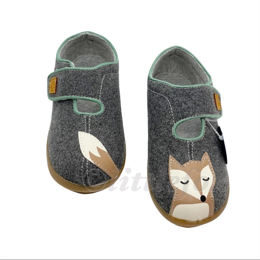 These cozy felted wool slippers feature a fox appliqué and soft warm materials. Toes have plenty of room to wiggle, while the hook and loop strap provides a secure fit.