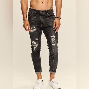 NEW SER.O.YA Diego in Black Phoenix Tapered Cropped Jeans Men's Size 32x27 Denim
