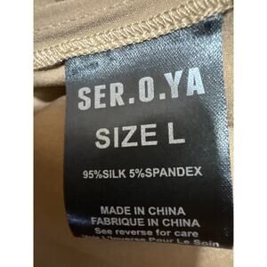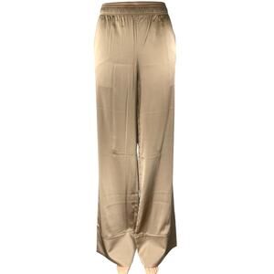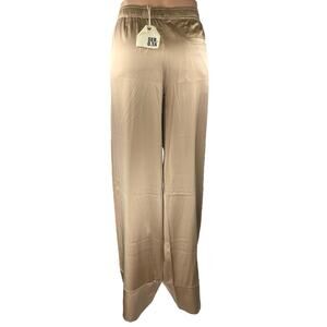 NEW SER.O.YA Tan Beige Silk Satin High Waisted Wide Leg Trousers Pants Size L