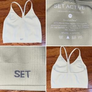 NEW SET ACTIVE LA $56 SCULPTFLEX® RIBBED V BRA sz XS PALE GREEN