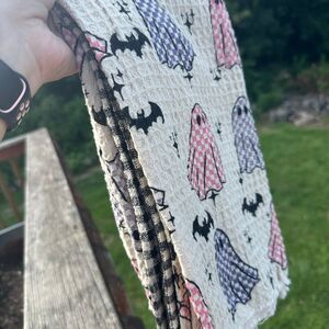 NEW SET OF 3 Goblin & Ghoul Halloween Hand Towels Pastel Ghosts Bats Checkers