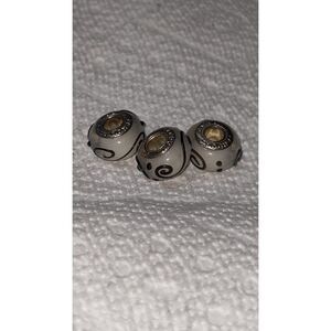 NEW SET OF 3 PANDORA MURANO TRANSCULENT WHITE W/SWIRLS & DOTS - REALLY CUTE