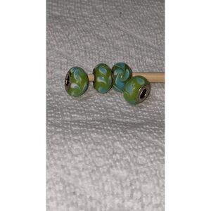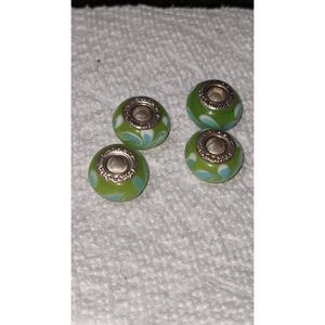 NEW SET OF 4 PANDORA MURANO BEADS - LT GREEN PURPLE W/BLUE & WHITE SWIRLS - BEAU