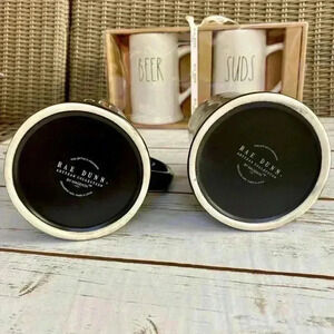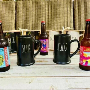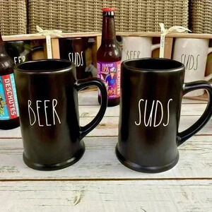 NEW SET of 2 Rae Dunn - BEER & SUDS - White Ceramic Beer Steins/Mugs - SET of 2