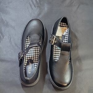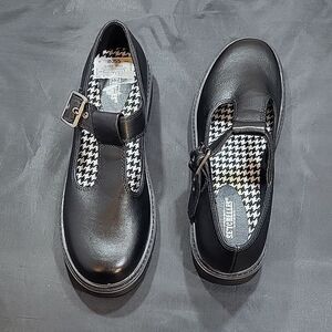 NEW SEYCHELLES ANTHROPOLOGIE BRAND KAMI MARY JANE SHOES CHUNKY HEEL VINTAGE PLATFORM LOAFERS SIZE 6M COLOR BLACK ADJUSTABLE BUCKLE ANKLE seychelles Girls Classic Buckle T Bar Shoes. seychelles provides Term special comfort features including a soft padded collar at the heel - ban blisters! The memory foam man made materials lining textile sock textile outsole insoles provide extra comfort for a long school day too. Keep Feet Safe and Secure - Strong Bar StrapvHigh Quality Leather Flexible and Rugged Sole Memory Foam Insole Heel Height measurements apron 1"inched THIS ITEMS IS BRAND NEW WITH TAG CHECK THE PICTURES