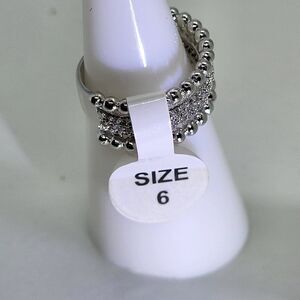 New, 18k White Gold-Filled and CZ Half Face Stone Ring, Size 6