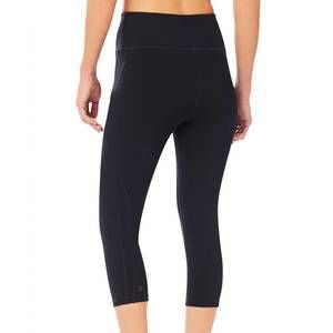 This high-rise capri leggings feature a premium 84% Nylon, 16% Spandex blend for comfort and functionality. Skinny leg style provide a flattering fit that highlights your curves. Easy to wear with a pull-on closure, they offer a versatile and chic look for any activity.