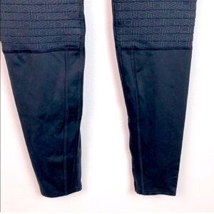 SHAPE magazine endorsed compression long perforated insets breathe and are sweat wicking. These leggings have a moto style design around the knees and a zero slip waistband.