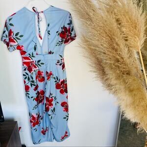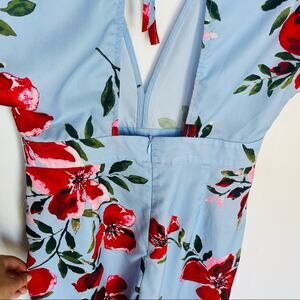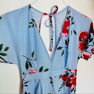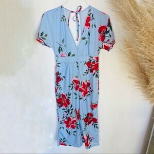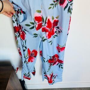 NEW SHEIN Blue Red Tropical Floral Tie Back Cropped Wide Leg Open Jumpsuit S