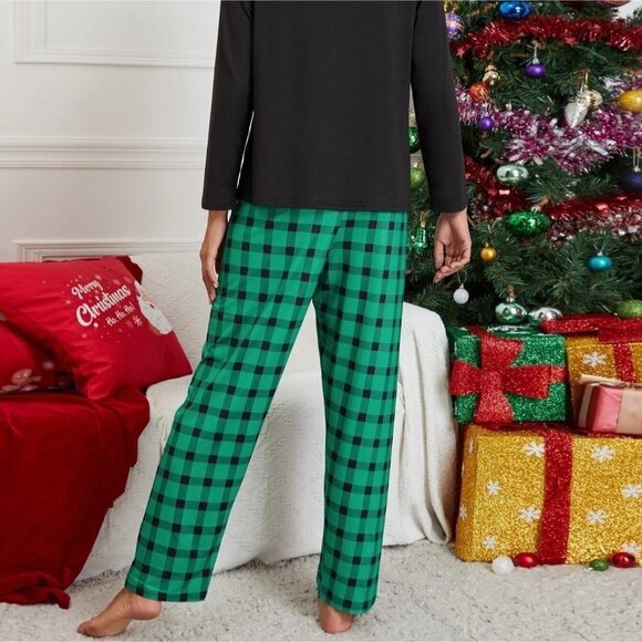 NEW SHEIN Christmas Print Tee & Gingham Pants PJ Set