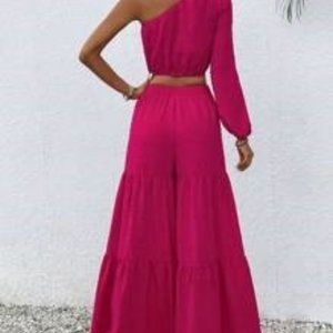NEW SHEIN Essnce One Shoulder Lantern Sleeve Crop Blouse Ruffle Hem Pant…