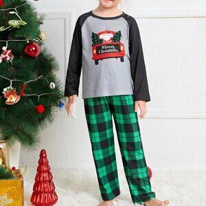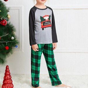 NEW SHEIN Toddler Girls Christmas Print Raglan Sleeve Tee & Plaid Pants