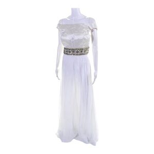 NEW SHERRI HILL White Crystal Beaded Off the Shoulder Open Back Gown Size 8