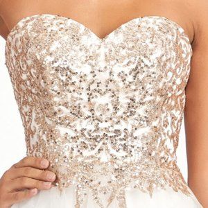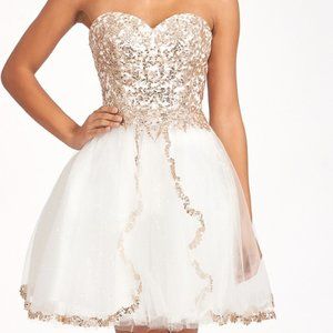 NEW SHORT BABY DOLL EMBROIDERED SEQUIN DRESS WITH LACE UP BACK AND ZIP GL GS1980