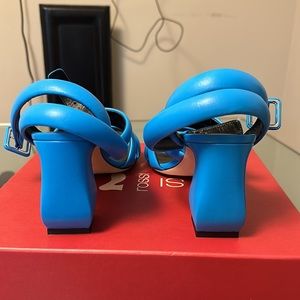 NEW SI Rossi by Sergio Rossi Italian leather sandals. 3 inch heels, leather soles, puffy thick leather strap across footbed and around the ankles, size 41 (fit US 10) Well made sandals