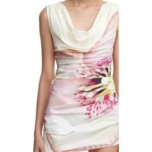 Elevate your wardrobe with the SIGNIFICANT OTHER Shiloh Mini Dress in Wild Rose, perfect for holiday parties. This sleeveless mini dress features a flattering cowl neckline and a chic bodycon silhouette, accentuated by a striking floral pattern. Composition includes 97% Cotton and 3% Elastane for the main fabric, and a lining of 97% Polyester and 3% Elastane, ensuring comfort and a sleek fit. Closure is by an invisible side zipper, with a care recommendation of dry clean only. Model is 178cm / 5'10" and is wearing an AU 8 / US 4.