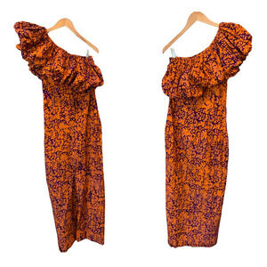 Hand made in Ghana from their signature block printed cotton, the label's Uma dress is elegantly ruffled along a single shoulder for a true summer statement-maker. Side slit hem. Side zip closure
