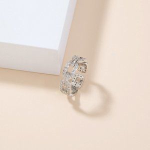 Brand new adjustable silver color cuban link ring with rhinestones. Looks great on its own or stacked with other rings.