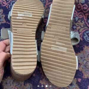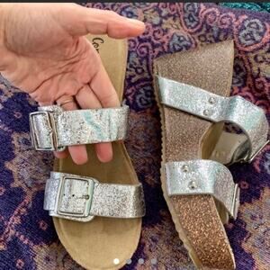 NEW SILVER METALLIC DOUBLE BUCKLE WEDGE FOOTBED PLATFORM SANDALS 7.5tbamboo