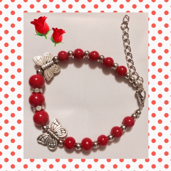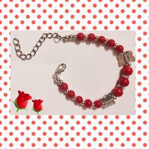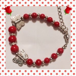 🌹NEW SILVER & RED BEAD Butterfly Bracelet