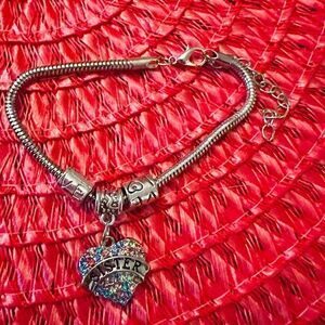 🎉🎉NEW🎉🎉 SISTER LOVE Bracelet w/ Colorful Rhinestones OS Adj Charms