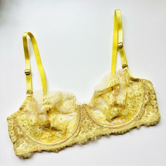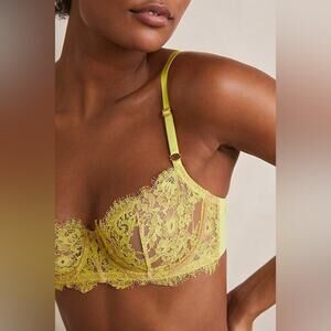 NEW SKARLETT BLUE X FREE PEOPLE Yellow Nude Tan Sheer Lace Underwire Bra 32C