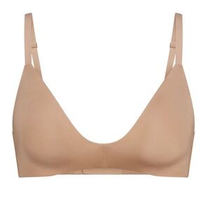 A flattering bra silhouette with lightly-lined, cloud-like molded foam pads for an ultra-comfortable fit. This supportive wireless style is ideal for everyday wear and perfectly shapes and contours the bust for a super smooth look. Features fully adjustable straps, wide wings for extra smoothing, a tonal 3D SKIMS logo on the front, and a hook and eye back closure. Fits true to your SKIMS bra size.