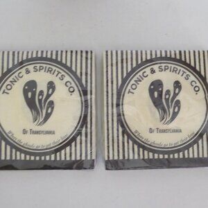 2 packages of 18, 2 ply, Target brand cocktail napkins. They read: “Toxic & Spirits Co. of Transylvania. Where the ghouls go to get their boos.” Size: 5” square