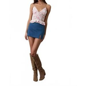 Elevate your style with the Sky to Moon Slit Detail Denim Mini Skirt, perfect for a vintage look at your next music festival. Crafted from a blend of 85% cotton, 13% polyester, and 2% spandex, with a 100% polyester lining, this slim-fit skirt features a flattering one-side slit. Made in China, it offers a convenient back zip closure for easy wear. Care instructions include machine washing for hassle-free maintenance.