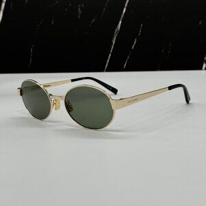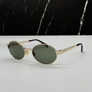 NEW SL692 003 SAINT LAURENT SL 692 003 OVAL WOMEN GOLD GREEN SUNGLASSES