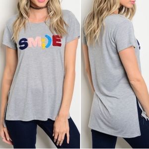 NEW SMILE GREY TEE SLIT SIDE TOP!