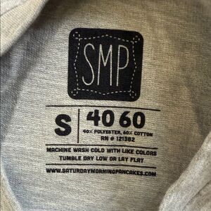 Saturday Morning Pancakes (SMP) lightweight sweatshirt top. Stay cozy and stylish with this gray graphic holiday sweater. Perfect for casual outings.