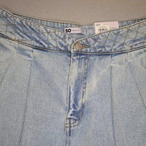 NEW SO Light Wash Straight Leg Pleated Crossover Waist Jeans Size 11