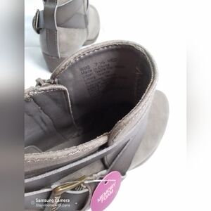 𝅺NEW SO Woman’s Taupe Grey Strap Buckle Ankle Boots Booties 7.5