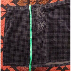 NEW SO Women's Plaid Corduroy Mini Skirt, Lace-Up Front 20/38W Gray & Blue.