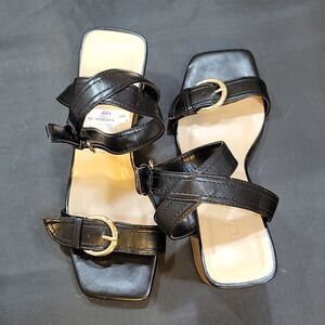 BRAND NEW SODA Square Open Toe Metal Buckle Sandals Satacked Low Heel Pumps Ankle Strap Slingback Comfort Shoes Sandal With adjustable buckle closure SIZE 61/2 COLOR BLACK WITH GOLD BUCKLE SHOES FEATURES: These sandals feature open toe, stacked heels, slingback, ankle strap, metal buckle decoration, which will make you feel comfortable for all day long.SUITABLE OCCASION: They are easy to slip on and comfortable to wear all day, easy to match, provide a graceful look and are perfect for evening parties, prom and wedding.Synthetic materials shoes are made from synthetic materials all man-made materials environmental-friendly. With a slightly padded insole and rubber outsole to ensure maximum comfort and long-lasting wearing THIS ITEMS IS BRAND NEW WITH TAG CHECK THE PICTURES