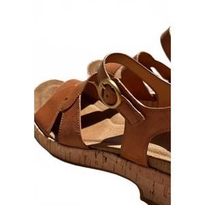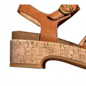 Step into elegance with the Sofft Women's Capri Heel Sandal in Luggage, a Boho Chic staple for summer. This sandal is meticulously crafted with a leather upper and lining for a soft feel and breathability. It boasts an adjustable buckle closure for a secure fit and features a suede-lined cork comfort footbed with raised foam padding for exceptional cushioning. The sandal's slip-resistant TPR outsole and 2 1/4-inch wedge heel offer both stability and a stylish lift, making it ideal for everyday wear.